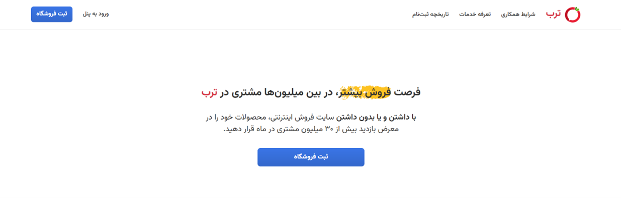 - ابتدا وارد سایت ترب شوید و در پایین صفحه، گزینه ثبتنام فروشگاه را انتخاب کنید.