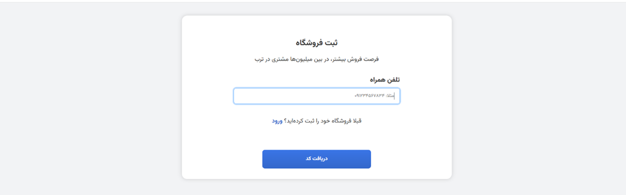 سپس روی شروع ثبت فروشگاه کلیک کنید.