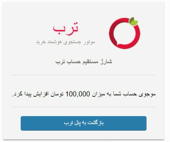 سپس یکی از مبالغ پیشنهادی را از منوی کشویی انتخاب کرده و روی گزینه پرداخت کلیک نمایید تا به درگاه پرداخت متصل شوید. پس از پرداخت موفق، به پنل ترب برمیگردید و پیام تایید پرداخت را مشاهده خواهید کرد.