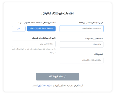 ۲. کلیک روی دکمه “ثبت فروشگاه”