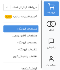 در این بخش، اطلاعات مختلف فروشگاه شما قرار دارد؛ از مشخصات و لوگو گرفته تا توضیحات فروشگاه و تنظیمات صدور فاکتور رسمی. هر کدام از این قسمتهایی که مورد نیاز شماست را به صورت جداگانه توضیح میدهیم: