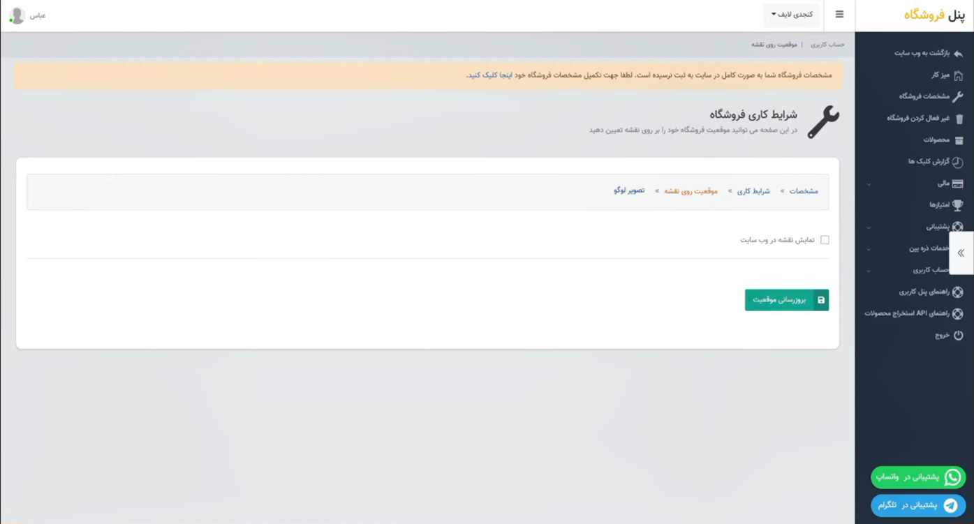تکمیل مشخصات فروشگاه