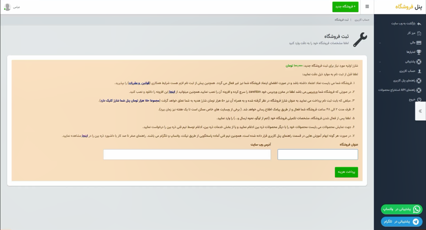 نکته: اگر چند فروشگاه آنلاین دارید، نیازی به ثبتنام مجدد نیست و میتوانید از همان پنل، فروشگاههای دیگر خود را اضافه کنید.