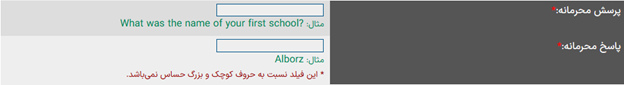 یک سؤال و جواب امنیتی تعیین کنید. (در نگهداری این اطلاعات کوشا باشید، این اطلاعات به سادگی قابل بازیابی نیست.)
