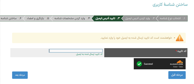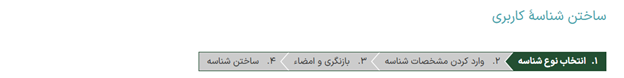 در صفحه جدید شما در روند ساختن شناسه قرار میگیرید که میتوانید از طریق نوار پیمایش مشاهده کنید که در کجای مسیر قرار دارید.