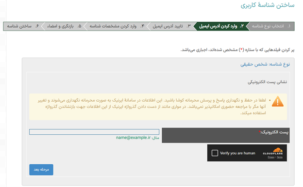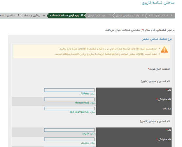 در این مرحله باید اطلاعات خود را با دقت وارد کنید: