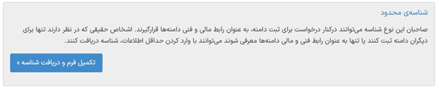 شناسه محدود: برای ثبت دامنه به نمایندگی از دیگران.