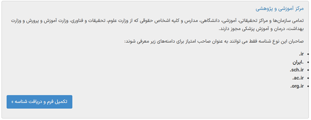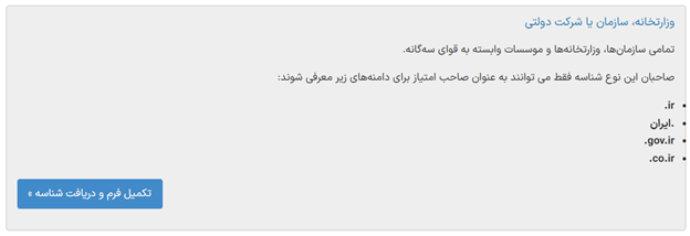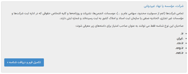شرکت، سازمان یا نهاد غیر دولتی: برای ثبت دامنههای شرکتی.