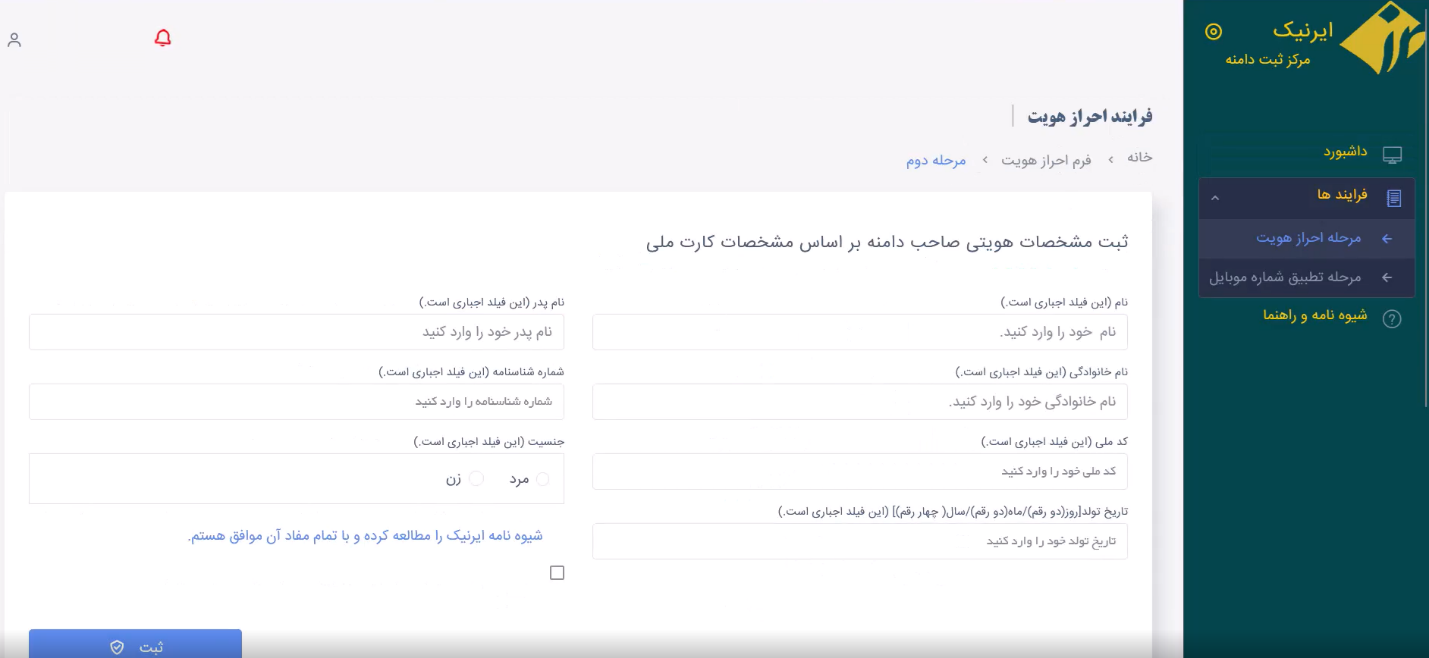 اطلاعات هویتی خود را وارد و ثبت نمایید.