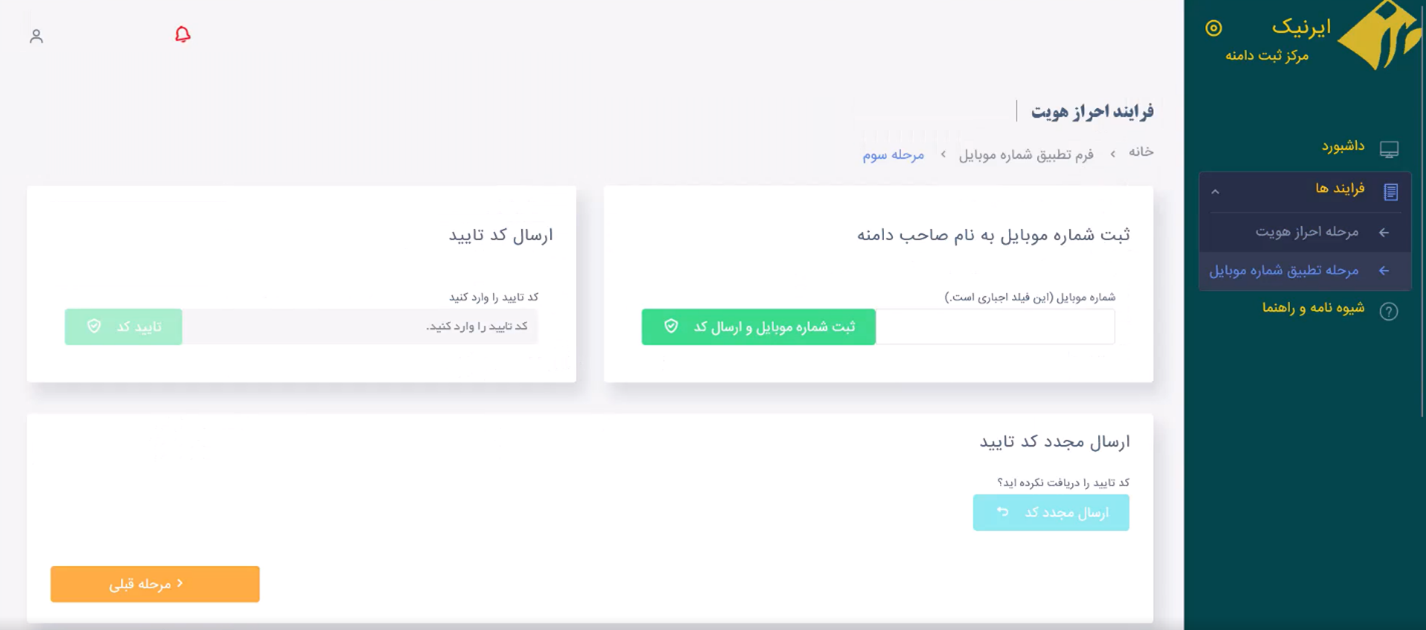 شماره موبایل خود را که حتماً به نام شما (مالک دامنه) باشد، وارد کنید.