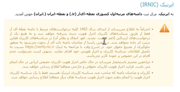 از سال ۱۴۰۲، ایرنیک قانونی را اجرا کرده که طبق آن، همه دامنههای جدید نیاز به احراز هویت دارند. همچنین، افرادی که قبلاً دامنه ثبت کردهاند، برای خرید، انتقال، تمدید یا لغو دامنه باید هویت خود را تأیید کنند.